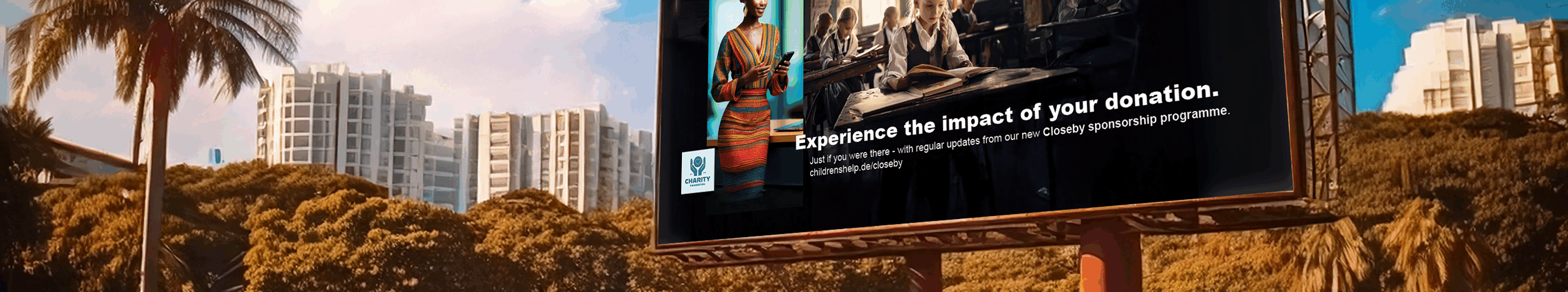 Initial trigger: Advertisement for the German voluntary charity organization “Kindernothilfe”, as displayed in a rural area in Brandenburg, Germany in March 2025.